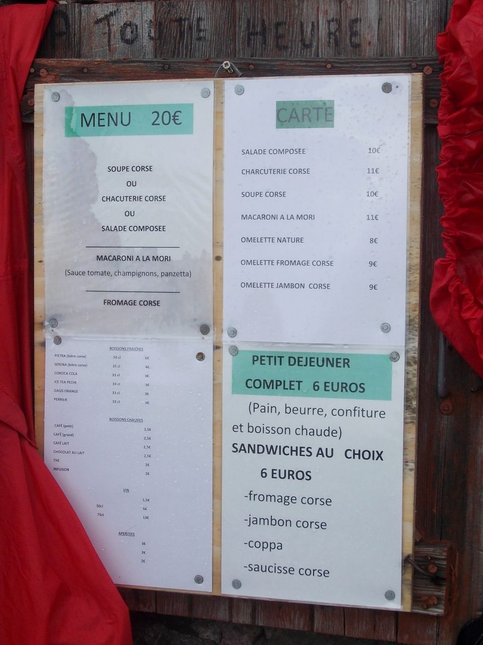 Na Korsice je velmi draho. Řešením je vzít si úplně všechno jídlo s sebou z domu. My jsme si nechtěli hrát hru na Soumary, tak jsme jídla vzali jen přiměřeně a počítali jsme, že v obchůdkách cestou dokoupíme. (Měli jsme s sebou deset snídaňových kaší a večeří a k tomu obědy akorát na dojití k dalšímu obchůdku. Což jsme tak udělali a velmi se to osvědčilo.)