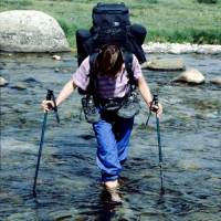 Náhle se před námi objevuje řeka. Přeskákat není kde, tudíž musíme brodit. Voda je studená, ale dá se to vydržet. Proud naštěstí není tak dravý a všichni jsme po chvíli na druhé straně. I když se Ištva diví, že jsem nepoužil pro lepší chůzi ve vodě sandále. Pokračujeme po pláni dál, stále po příjemné travičce, občas s nějakým potůčkem, či houpavým vyschlým močálem. Občas trochu krápne, ale vždy jen krátce. Spíše hodně fouká vítr, což naštěstí nesvědčí komárům, kterých by tu jinak bylo hodně. Před pátou přicházíme k další řece, širší než ta předchozí. Naštěstí je vody jen nad kolena, i když proud je sice větší, ale dá se ustát. Jirka se vrací a Hance přenáší batoh. Zde by přece jen mohla mít problémy a koupel, především batohu, by nebyla vůbec příjemná. Nad námi je nebe čím dál černější, takže se utábořujeme hned poblíž řeky, pod menším srázem, který nám snad bude sloužit jako závětří. Pouze terén je zde trochu nerovný. Dostatek podvečerního času trávím dopisováním deníčku a čtením průvodce. V noci opravdu začíná pořádně pršet.