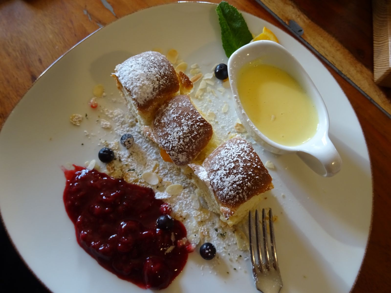 Bylo vedro, a to i v tričku s krátkým rukávem, i když jsme byli 800 metrů nad mořem. Chvíli do odjezdu autobusu proto většina z nás trávila čekáním ve stínu. S Radkem jsem si prohlédl hřbitov u kostela, on znalecky ocenil stovky různých vzorů kovových náhrobních křížů. Autobusem jsme se vrátili na sever, zpátky do Štýrska, do města Knittelfeld. Aby Lenka nepřijela domů až nad ránem, změnila si lístek na dřívější vlak do ČR a rozloučila se s námi. My ostatní jsme šli hledat nějakou pěknou místní restauraci. Po doptání jsme zavítali do parádního Gasthausu Bachwirt, na druhý oběd, což byla skvělá předposlední tečka za úspěšnou letošní výpravou. Poslední tečkou byla místní kopečková zmrzlina, kterou jsme zakončili dnešní horký den. Po šesté jsme s přestupem ve Vídni odjeli směr Brno, jen Koudy, který se potřeboval dostat na Šumavu a dnes už neměl vhodný spoj, si ještě o další noc protáhl zdejší pobyt. V jedenáct večer jsme se vrátili do Brna.