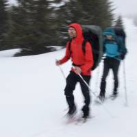 Ráno bylo skoro modro a všude ležel poprašek sněhu. „Ujel nám vlak v Klagenfurtu, stopujeme, máme to k vám ještě dvacet kiláků“, volali Radek s Lenkou, kteří do Rakous přijeli nočním přímým busem z Prahy. Nevadí, počkáme. Došli jsme si zatím do městečka pro pitnou vodu. O půl deváté dorazil Koudy (nocoval někde na trati) a za hodinu přijel i Radek s Lenkou. Naše každoroční sněžnicová parta tak byla kompletní.