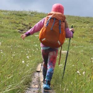 – „Nejvíce se mi líbila sušárna v horské chatě, kterou jsem odhalila na poslední chvíli, a vše nám díky tomu hezky uschlo. Pak ještě fika v chatě. V přírodě se mi líbila duha (možná jsme ji dnes viděli i desetkrát), zajímavá krajina a také jsem si postupně rozvzpomněla, že jsme už tady jednou byli a šli. Nelíbily se mi dnešní drsné podmínky, ač bylo dobré, že jsme to nějak zvládli. Nejdrsnější pro mě je, že mám těžký batoh, bolí mě ramena jako ‚prase‘, musím jít s Bárou pomalu a děti řvou. Pomalá chůze je snad horší než vítr a déšť, ty se dají chvíli vydržet,“ doplnila Janča.