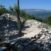 Když ráno vylezu z domu, svítí sluníčko - dnes bude pěkný den. Včera jsme se dohodli, že před devátou odejdeme. V domě s námi spí i jeden místní klučina: asi nás hlídá, aby se nám něco nestalo. Bohužel někteří z nás opět dlouho balí, takže to nedodržíme. Kluk tak musí čekat, až se všichni vypakujeme. V baru, kde jsme včera seděli, ráno nikdo není. Alespoň děkujeme barmanovi, který bydlí vedle, a vyrážíme směr hřeben. Slunce praží už od rána. Jdeme mezi domky a pak mezi políčky. Bohužel cesta se různě dělí a také je stále více zarostlá. Jednou se i kus musíme vracet, špatně jsem odbočil. Jeden starší pán, kterého potkáváme, nás kamsi posílá. Já to bohužel špatně pochopil a tak ženu celou expedici někam jinam. Cesta končí, jdeme po bývalém poli, bodláky a nakonec se škrábeme vysokým kamenitým korytem potoka. Jinde se jít nedá: všude je pichlavá macchia.